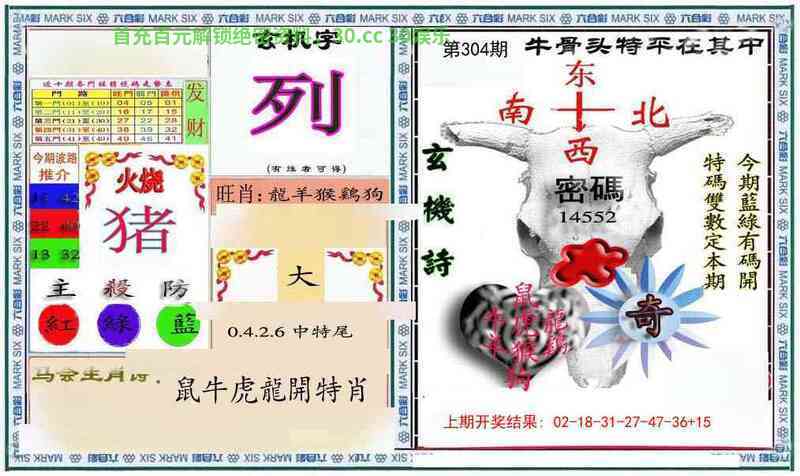 304期:九肖【猪鸡龙虎兔鼠蛇牛】开:马48