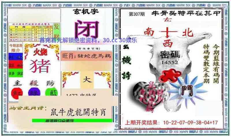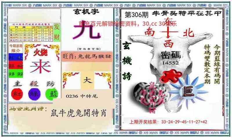 306期:九肖【羊龙蛇狗马虎鸡猴开:牛17